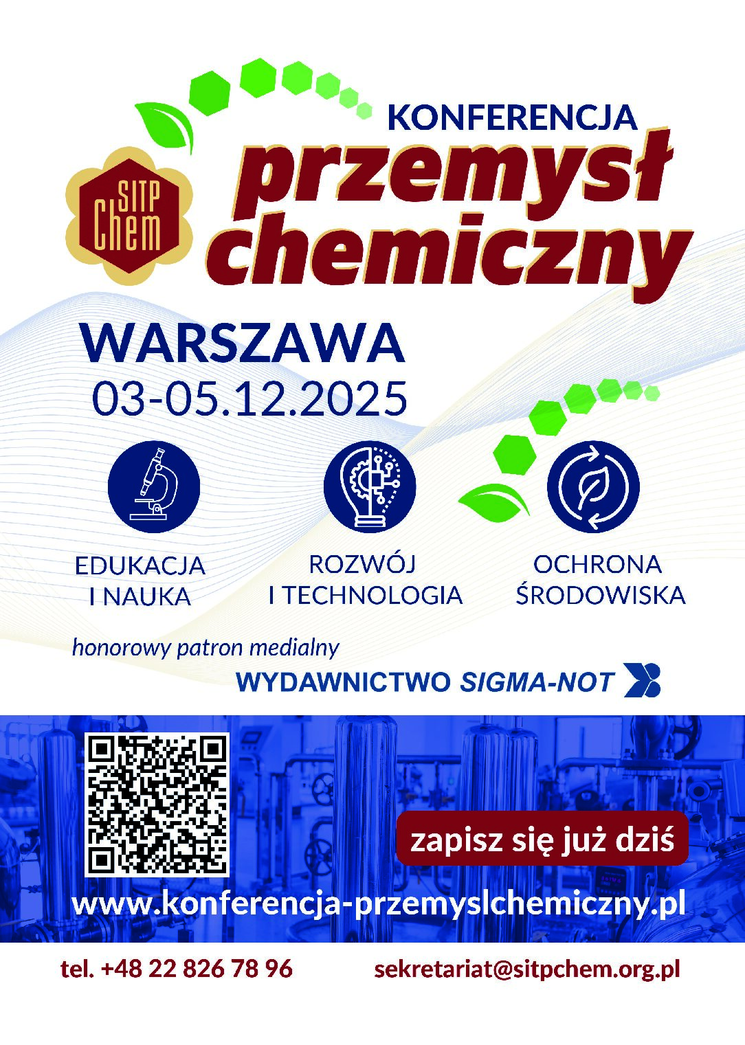 W imieniu Stowarzyszenia Inżynierów i Techników Przemysłu Chemicznego SITPChem zapraszamy do udziału w konferencji naukowo-technicznej „Przemysł Chemiczny” w dniach 3-5 grudnia 2025 r. w hotelu Gromada w Warszawie.